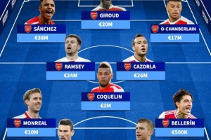前锋:桑切斯(3800万)、吉鲁(2000万)、张伯伦(1700万)