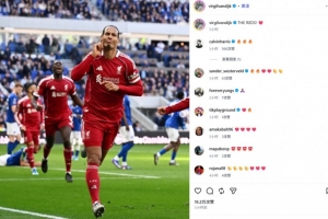 范戴克也在赛后通过社媒晒出自己进球后的庆祝照,并配文:“红军!”